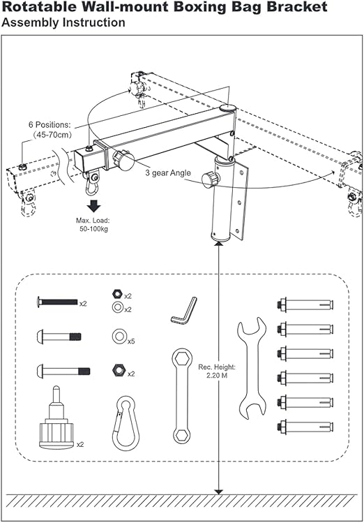 - Adjustable Length: Features quick-adjust technology with multiple length settings, accommodating different bag sizes and training spaces. Adjust your Punching Bag Mount quickly and easily with the included index plunger.